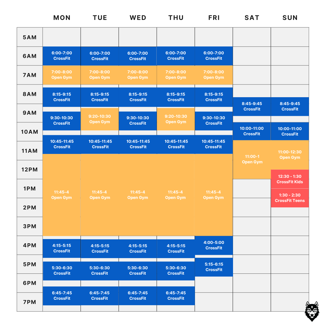 SNAPSHOT OF CROSSFIT BARRIE’S SCHEDULE